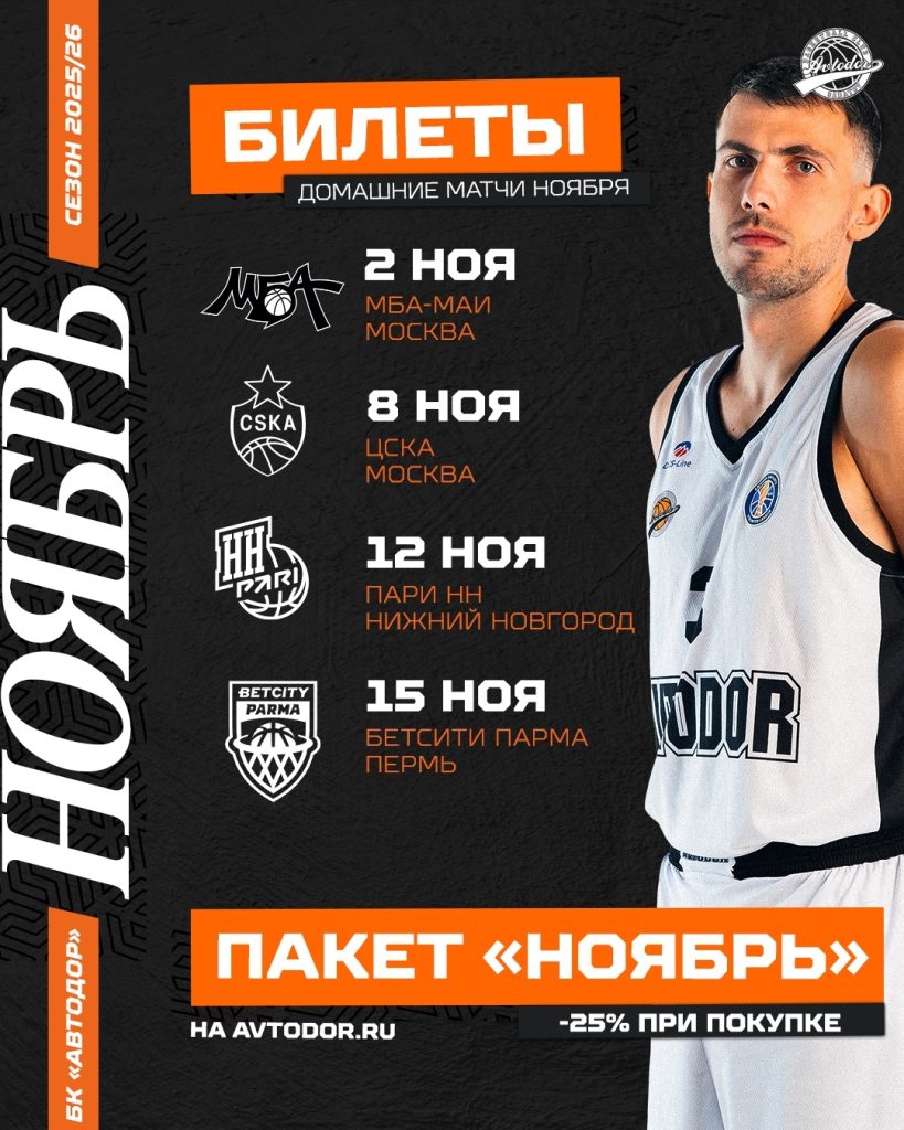 Пакет «НОЯБРЬ»: при единовременной покупке билетов на все 4 домашние игры последнего месяца осени — СКИДКА 25%! 🔖